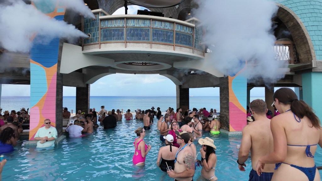 This is the one most people overlook before booking. We arrived at noon. Three other Royal Caribbean ships had been at the Royal Beach Club since early morning. Almost every chair was already gone by the time we got there. The pools were packed, and we were all leaving at roughly the same time around 5:00 — so the crowds never thinned.